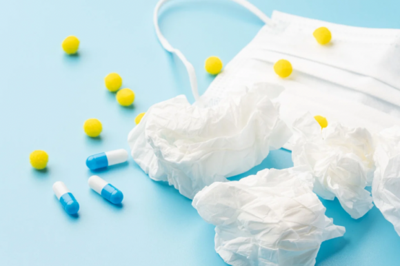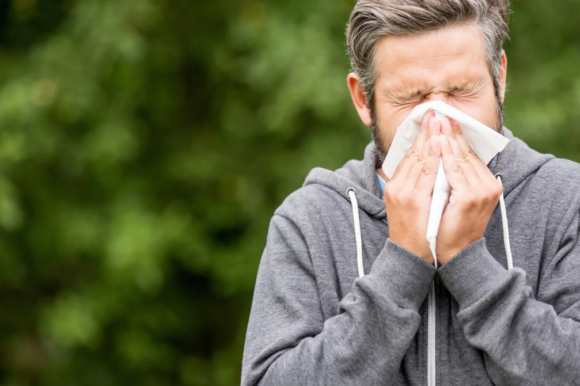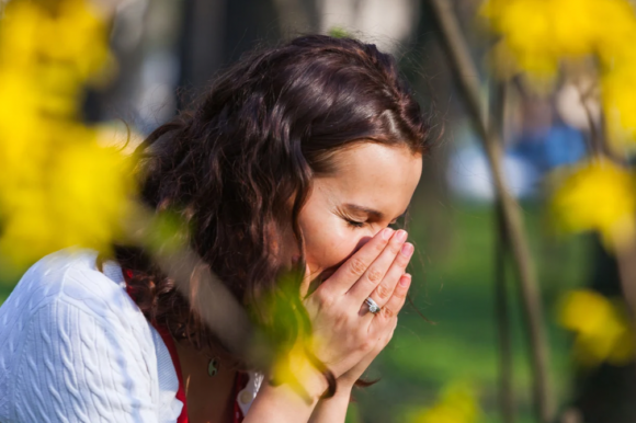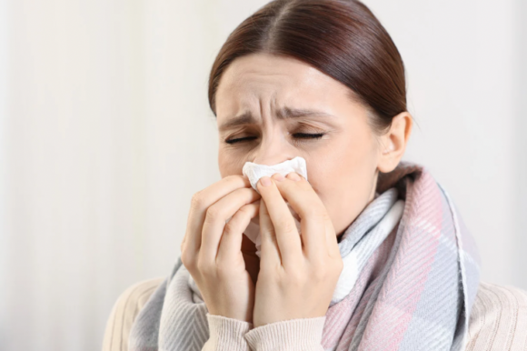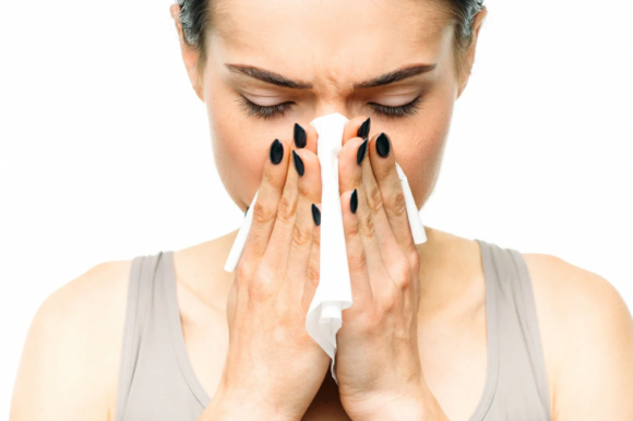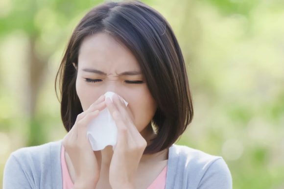 花粉症の代表的な症状である、鼻水やくしゃみ。